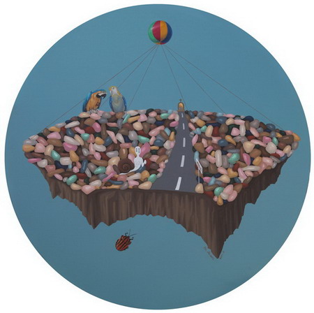 岳敏君_迷宫系列-五十以学_布面油画_直径200cm_2011
