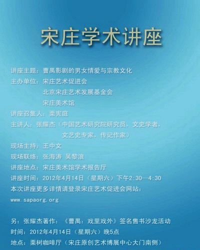 另:张耀杰著作:《曹禺:戏里戏外》签名售书沙龙活动