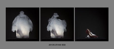 用短暂易逝的肥皂泡材料在妻子的婚鞋上塑造曾许给他的诺言。这些曾许诺给她的物品在鞋上如梦似影的出现与消失。这是一件关于生活的幻想日记,一件关于物与梦的矛盾真实。