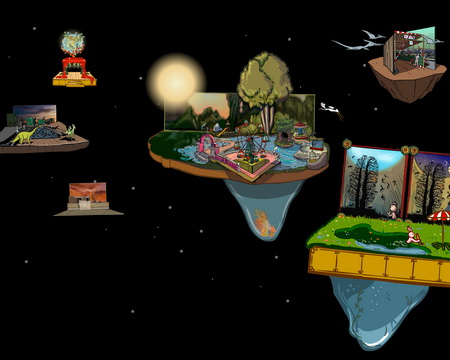 《未来荒》也是为展览而做,仍然延续了上述的随意的做法,但我想说的是,这种做法是始 于随意,目的是为了给素材自身的“生命”得以延续,根据素材产生的可能性,设计一条合 理的方向。随意之后,理性仍然是主角。 未来荒的背景音乐很“太空”很优美,即使温暖是一种遥远的温暖。它让我想到人的心灵之 间有可能产生的距离感,相遇的偶然性。 前半段是各个“世界”的展现,后半段表现它们其实都是漂浮在黑暗的太空中的小岛。插了 一小段是动物在两块伏岛之间跳跃的情节,略微解释同一角色为什么可以出现在不同场景 中。有人自得其乐,有人焦躁,有人无奈。这是个什么样的世界,人能做多少呢。