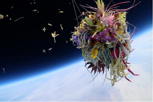 EXOBIOTANICA 2-植物太空飞行。2017年8月12日。美国内华达州洛夫洛克沙漠AMKK(东信、花树研究所)当时他在平流层中推出了白松盆景树和鲜花