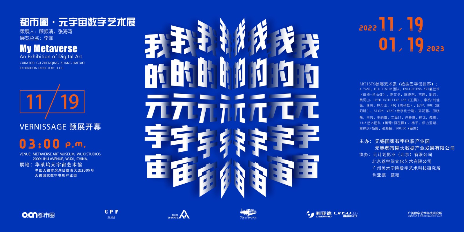 《我的元宇宙》数字艺术展在无锡国家数字电影产业园华莱坞元宇宙艺术馆A、B、C三个展区同时展出。展览正式对公众开放时间自2022年11月25日持续至2023年1月19日,每周二至周日上午9:30时至下午6:00时。周一闭馆。