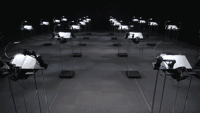 阅读对你来说,到底是什么?是习惯,还是压力?台湾艺术家王连晟创作的作品《阅读计划》是一个互动装置艺术作品。艺术家设计了23台的自动翻书机放置在展场中,当人们靠近时,那些机器就会开始自动翻书,并且朗读书本内容给观众听,“子曰:学而时习之,不亦悦乎?……”。