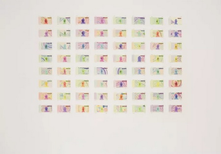 《区块币》由64张从比特币区块链生成的系列纸币组成,艺术家用Python脚本解析比特币区块链获取自己所感兴趣的信息。生成纸币的主要应用程序是用Lua和C++语言所写,使用的工具库都是艺术家本人自己搭建。