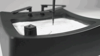 《书沙台》是一件创新交互式的装置艺术作品,艺术家将书法作品导入设备,最终让机器在沙子中呈现出来,实现传统书法与软件和硬件装置的融合,用户可以在手机应用中把他们手写的内容转换成沙函寄给朋友,收信人需要通过因特网或蓝牙连接装置艺术接收内容。