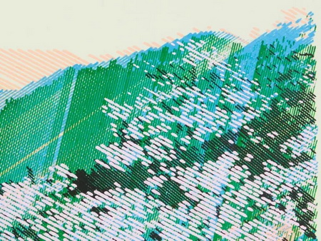 ▲ 《樱花与山脉》 2017 达米恩·博罗维克 (英国)静态图像, 法布亚诺蚀纸面丙烯