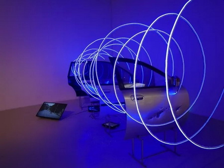 作品材料:影像 车门 钢条 LED