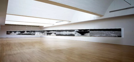 安晓彤运用传统宣纸和水墨的材质,但未用一笔一画,全用拼贴、晕染及特殊方式制作而成。“山水” 图卷全长近60米,以山水为依托,呈现出超越形式之上的氤氲意象和超然气质。