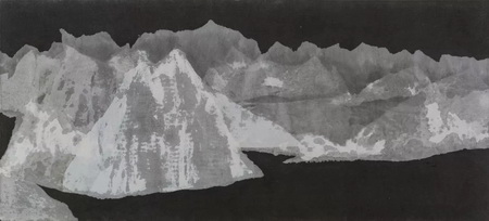 这里呈现的 “山水”,作者似乎在刻意抽空作品的观念及其他能指。作品中没有愉悦感官的谄媚,没有声东击西的犬儒,没有悲天悯人的情怀,也没有自慰式的形而上,只有一例山水样式。