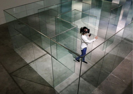 ▲ 陈抱阳(中国),仿生人会梦见电子奶牛吗 ?虚拟实境、镜面迷宫、影像 、 声音 、尺寸可变 ,2017 - 2018年