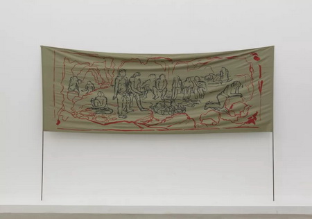 ▲《我们需要连夜打制一些箭镞出来》We need to make some arrows overnight,纺织物拼贴,尺寸可变textilecollage, variable dimension,2018-2019