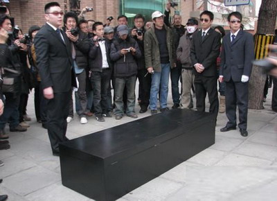 原来在展映前一小时,有关部门要求今日美术馆的影像放映人员进行试映,并在他们的监督下对有关段落进行“快进”处理。结果被快速放映一遍的纪录片《七宗罪》完成了第一次,也是唯一一次亮相。