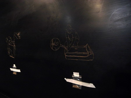 黑板,这个最草根的、最政治的、最正经的、最模式的、最空洞的、最普及的、最花里胡哨的、最人手一个的大众艺术创作方式,使那些珍贵的,惟妙惟肖的,灵光乍现的,歇斯底里的,别扭执拗的,不可压抑的艺术才能得到最初的展现和夸赞。即使它是一个如此意识形态,如此固定化,如此法西斯,如此表里不一的宣传工具,但也丝毫不阻碍那些具有艺术家天赋的不可阻碍的对形式语言的敏感,那些惊天动地的才华同样孜孜不倦的可以在7、80年代的审美框架里恣情流露。那么,今天已经获得充分解放和自由的艺术家,如何来面对一块曾经熟悉,但又如此朴素的黑板呢?
