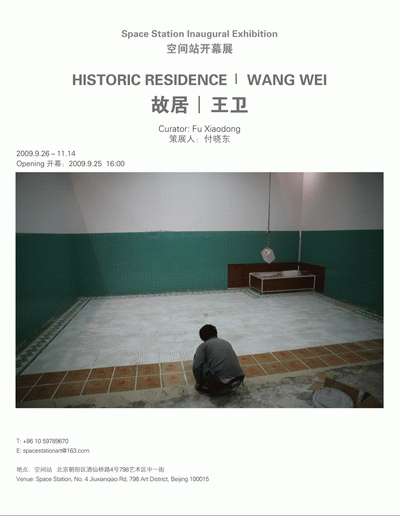 作为2009年9月25日新型的当代艺术实验空间“空间站”开幕展王卫作品 “故居”,模仿的是60年代湖南韶山滴水洞的一处历史纪念性建筑的必要部分。在官方资料中,它周围的环境以“洞中碧峰翠岭,茂林修竹”被描述.。著名党史专家冯文彬赞誉道:“三湘灵秀地,洞中别有天。”在这个“故居”周围,既有严格按照东方传统巫术般的风水学建造的宗族祖坟,也挖掘了可以与西方现代最发达高科技相对抗的防御原子弹的防震室和防空洞。故居正是存在于一个历史回溯与未来危机互相贯穿的时空错乱的场域之中。