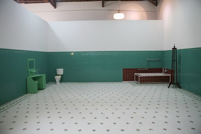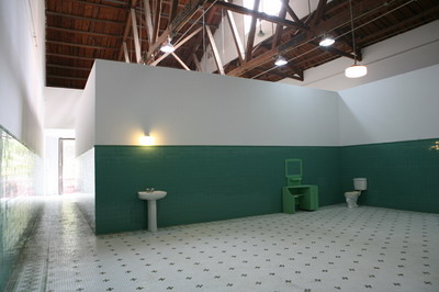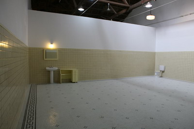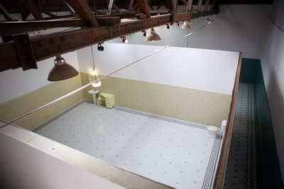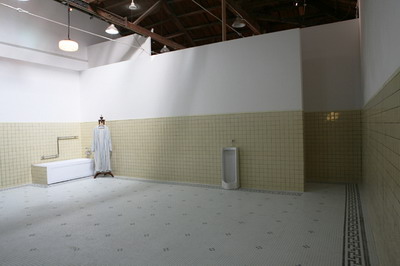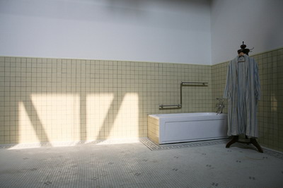 空间的现场,两个携带了5、60年代建筑风格和社会主义审美趣味的60平米空间,具有特定用途的功能性和必要的封闭性。一对区分“男”“女”的庄严巍然,充满荣尊,又简洁素淡的洗漱室。政治倾向、时代痕迹、阶级标签、身份象征与个人喜好,都在这里得以充分体现。瓷砖的颜色在建造时期经过别有心思的选择,在现场的背景音解说道,由于名字里有“青”字的原因,“苹果绿是她一生中最喜爱的颜色”。而另一间的黄颜色瓷砖则是“代表九鼎之尊,是一种尊贵的颜色”。这个封闭功能性的私人空间,实际是一个特殊而错乱的空间。它虽然只被一个人使用过11天,功能性极小,但意义性极大。一个最私人化的隐秘空间,成为了附着了神圣传奇的可供千万人瞻仰的丧失功能的纪念物。它是一个如此矛盾的存在,即不真,也不假,即不内在,也不外在,不应彰显,也不能遮蔽。一个空间更象是一个时代的隐喻,作为一个神话,曾经存在。它不是为了装饰,而是为了补偿一种文化上的愧疚感。它代表一种内在性的超越和现实中的幻想,如同偶像护符一样每一个细节都充满了的幻想的投射。它是由历史所赋予的崇高而神圣的幻想所构造,又以如此现实而物质的形式得以存在。它作为一个大背景下的个人化的日常痕迹,又是一个特殊化了的政治、历史、文献中神圣的证据。这使历史和世界围绕它为核心平面的延展开去,建构起一个以神奇的非现实性保存的历史现实。