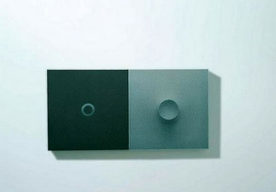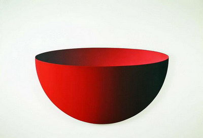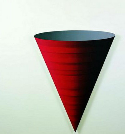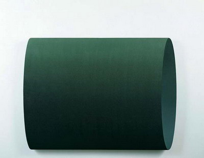 2006年以后,陈文骥对简单的形体进一步提炼,画面不再有任何可辨认的物体,而只是一些非常概念的形。圆、圆锥、椭圆、三角,然而这绝非极简主义或者视错觉绘画里的形。陈文骥完全是在用写实的手法,严谨而详尽地描绘立体形态里的每一个细节。这些立体简约的形我们可以理解为来自于烟囱和水塔,而这也是画家发现的另一个自由广阔的天地。它介于抽象和写实之间,也介于平面和立体之间。在最新的作品中,陈文骥痴迷于表现形体两个面转折之间的边缘。根据绘画里透视的基本原理,两个面之间的转折,或者一个球形切面形成的圆弧,其实并不是一条线,一个锥形的尖部,也不是一个点,而是由无数个面组成的。陈文骥那么醉心于表现这个边缘地带一切细微的明暗变化,几乎可以让我们相信他在试图完成那无数个面。或许,有人认为这些形体等同于计算机三维图形,但是,画面上的肌理表达和手工感觉是如此感人至深,质朴的技法,耐心的描摹甚至带来禅学意味。或许,这些画布上的形也让人联想到安尼西•卡普尔(Anish Kapoor)的雕塑,立体的卡普尔雕塑用光滑的或凹或凸的表面,将对环境的反映最大化或者最小化,最近或者最远,给人带来强大的心理和生理反应,直接而强烈。而这种感受,恰恰是他的雕塑消除了边缘带来的结果。影像的连续性形成了一个法力无边的场。陈文骥的绘画则深刻挖掘了平面的价值,他在平面上制造这种立体的效果,温和地帮助观者感受。当观者的目光游走于那些边缘的时候,可以认为那是具体的,也可以认为是不确定的空间和形。在表达方式上,陈文骥非常内敛、不事张扬,将矛盾挤压到若有若无的一线之间。这仍然是一种回避冲突式的,不具侵略性的姿态。
