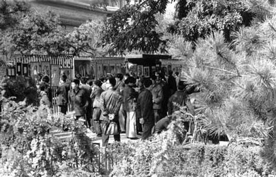 “星星美展”的主要筹划者之一马德升(中)在展览现场 李晓斌摄
