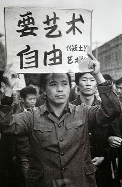 1979年,9月27日-12月2日 第一届“星星美展”在北京中国美术馆东侧展出。9月29日遭禁,10月1日“星星”成员上街游行。同年11月23日移展北海公园“画航斋”,由于展览遭遇封杀到游行到复出,在北京引起了巨大的轰动,当时参观人数超过了三万。这次展览由23位艺术家组成,大多数都是青年的业余作者,作品163件,有中国画、油画、版画、木雕等,主要成员有王克平、马德升、黄锐、曲磊磊、邵飞。后来栗宪庭在次年的《美术》发表的文章将作品基本分为两类,一是干预生活的作品,一是对形式美的探索。这是一次带有革命性意义的艺术事件,它给中国当代艺术起到了催化剂的重要作用。