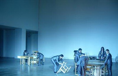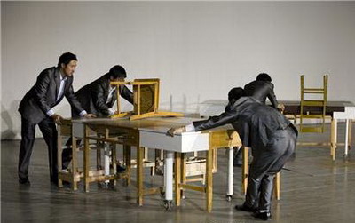凝视与游离,叙事与呈现,构成了我们观看作品(电影、戏剧、展览)不同的空间方式,它们同时被隐匿于时间的控制之中,时间既控制着我们的观看又将我们隔绝在不同的“正确性”中,我们已经被固定在各自艺术方式的形态之中。《时间•剧场•展览》将提供一种逆向的观看,尝试将产生于不同空间形式的艺术,在时间的基础上重新布置,使这些艺术形式共享同一空间。艺术家希望探讨一个事件可否在一种重叠时间的过程中被重新认识,是否可以用戏剧的凝视去观看展览,同时用看展览的方式去体验戏剧,它们相互交叠、并置、循环,形成了新的时间现场。
