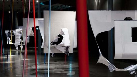 作品“The Achromatic Island”(2009/10)对观看与感知的过程提出了直接的质疑。这部影像作品是以丹麦Island of Fuur的历史为基础的——这里的一些居民世世代代都患有遗传色盲疾病,直到上世纪30年代。利用黑白分明的文字、照片以及影像,苏菲·托森(Sofie Thorsen)展现了那些患有眼病的居民眼中的Island of Fuur。另一件作品“Spielplastiken”(2010/11)则像雕塑一样向外生长到了美术馆之中,这与一项名为“Art in Construction”、在二战后重建时期形成的项目有关:数位艺术家受邀为维也纳的一系列儿童游乐场设计雕塑作品,而这些带有乌托邦式的形态与色彩的雕塑在50年代毫无生气的维也纳显得特别突出。