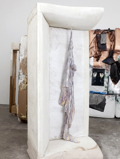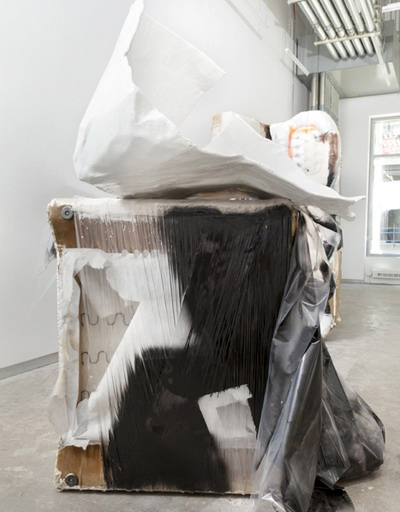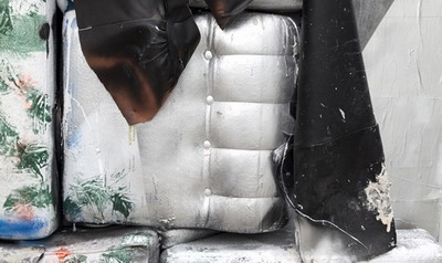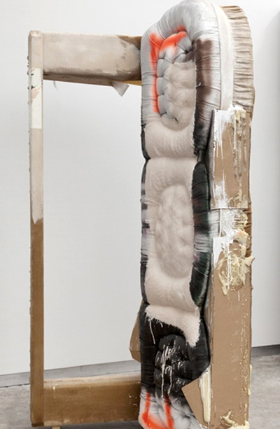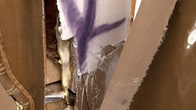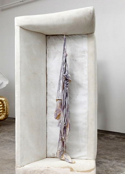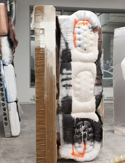 在作品“The talk that counts is the talk that doesn't matter”中,一张竖起来的烂沙发代表了社会中被摧毁了的物品。沙发象征着平静和久坐不动的家庭生活,而它在这里却被转化成了某种全新而且未知的东西。