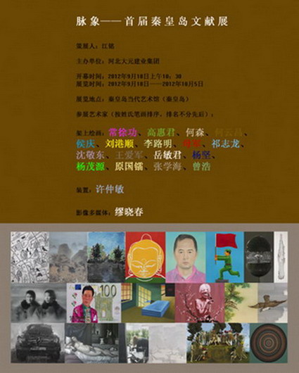 脉象——首届秦皇岛文献展 Exhibition Plan Curator: Jiang Ming Opining Time: 10 A.m. of 18 September 2012 Artists (Ranked in no particular order, other than alphabetic order): 文︱江铭 在我们大众的美学教育中,曾经被告知:文化艺术是时代的反映。实际上,真正对文化的进程造成影响的文化艺术是时代的前趋。这是历史告诉我们的知识。任何一个时代总会有一部分先锋人物在各个领域中都跑在了时代的前面。这种前趋性并不是他们超越了时代,而恰恰相反,正是他们的尝试才代表了一个已经来临并正在诞生的新时代。在文化艺术领域也是如此。他们的艺术及其风尚不仅改变了旧时代的美学秩序,而且还引领新时代的精神不断再向前。 中国当代艺术20、30年来的发展历史清晰印证了这样的经验。 今天在中国北京、上海、广州这样的中心城市,文化艺术圈中若有人不曾看见过、接触过当代艺术,那简直就有点像满清的遗老被民国所抛弃, 像文革的造反派被改革开放所淘汰一样。北京798、宋庄、草场地艺术区,如今不仅是文化知识分子们经常光顾的地方,甚至已经成为公众旅游观光最感兴趣的地方。 然而,文化艺术的传播有一个从小圈子向公众,从中心向外围扩散的规律,就像地震波一样总是以同心圆向四周扩散。而文化现象的发生也是如此,它总是从文化的中心城市向边缘城市渐进式地传播。当边缘城市将某种文化现象当作先锋文化在谈论之时,其实它已经在文化中心多年之前就已经发生了。 今天,我们所谈论的当代艺术的历史,实际上还处于一种模糊状态,我们所获知的其实还是一些片断、一些存在诸多争议的现象学,一只生死叠加的“薛定谔之猫”①。 中国社会今日之状况看似乱象环生,各种思潮、价值观纠缠不清,让无数的人心乱情迷,茫然无序,仿佛被一种无边的法力抛弃到茫茫的海上,找不到一盏能够指向彼岸的灯塔。然而,我们的认知如果足够清醒,那么在纷繁错综的乱象之中,一定也有着一些清晰的秩序与规则。 今日中国社会的文化生态在历史的脉络上,我以为是建立在三大文化传统和一种现实情境之下。三大文化传统是指:一、中国的传统文化传统(即以儒释道为框架的传统文化系统);二、毛泽东文艺的传统(1949年新中国建立后逐渐完善的毛泽东文艺路线及其所形成的革命文艺的传统思路);三、邓小平改革开放所形成的中西融合与折中的传统。这三大传统对中国现阶段文化生态产生了无法规避的影响,渗透到了文艺创作的各个领域。今日中国的文化创新与演化无不以这三大传统作为主要的资源。其文艺作品的表现及其倾向也都是继承和扬弃了这三大传统的诸多内容。 而一种现实情境则是指中国人人性内在的功利主义本质。中国人的勤劳刻苦是由于其生存环境所决定的。低端的生产技能与缺少福利保障的现实使得中国人的勤劳,是世界上其他民族无法相比的。而知识分子勤奋刻苦的努力也没有几个是真正的追求真理与精神价值,大多数我们世俗意义上的知识分子读书的目的都是为了获得一种荣耀(传统社会更明显),获得未来生存更大的资本(现在社会更突出)。这样的一种功利主义的本质也就证明了为什么在中国人的精神性上没有宗教感。传统意义上的中国的道教、佛教的庙宇、典礼、以及儒家应用于皇权的仪式在情感上触动的只是中国人的美感与想象,而不是触动中国人内在的心灵与灵魂。其实,并不是中国人没有宗教感,而是中国人没有强烈的宗教需求的愿望。这样一种没有宗教感的现实功利性与统一性,在本质上正是中国社会艰难的生存状况所决定与形成的。 所以我们在研究与观察今日中国文化艺术现象及历史问题时,都只能从这三大传统与一种现实情境的框架中寻找根据。离开了这四种因素也就离开了中国文化研究的基本脉络,其阐述与言说基本也就是张冠李戴。 我们用脉象一词作为这次展览的主题,借用医者诊脉之道,以察阴阳,决生死,知天寿。而艺术家则是借用作品之精神以断生命、社会、现实之脉象。这次展览的综合性形式也是在这个基本框架的思路上选择了一些在30年当代艺术发展历史中有说明意义的一些艺术家的作品来勾画出中国新文化的一种脉象。 注释①“薛定谔之猫”:1935年奥地利理论物理学家埃尔温•薛定谔(Erwin Schrodinger)提出的关于量子物理学的一个理想实验。往一个密闭的箱子里面放入一小块铀、一个盛毒气的玻璃瓶、一只受检测器控制的锤子以及一只健康的猫。于是对于观察者来说,箱子里面的猫处于“生死叠加”的状态。因为我们无法预测铀的衰变时间。它可能此时正在发生,也可能在未来的任何时刻发生。 作品阐释:(随机撰写,不分先后) 传统中国书画经过千年的时间构筑了趣味美学的迷宫,岳敏君则从这座庞大的迷宫走出来,重新在当代的观念游戏中构筑起另外一座迷宫。 何森从青春的自伤中出走,企图借用传统中国书画与西方油画的语言重新找到一条自由往返于东西方各自神界的路径。 高惠君始终坚持在东西绘画系统中寻找折中的道路。在绝大多数艺术家完全抛弃中国传统书画系统的探索时,高惠君却始终相信东西方文化之间一定会有一个混血的私生子要借腹诞生。 杨坚的轮胎系列将传统书法涂写其中,借以隐喻了传统与现代生活的尴尬关系。在这种关系中,传统要么被抛弃,要么就复活后重新吃掉现代的