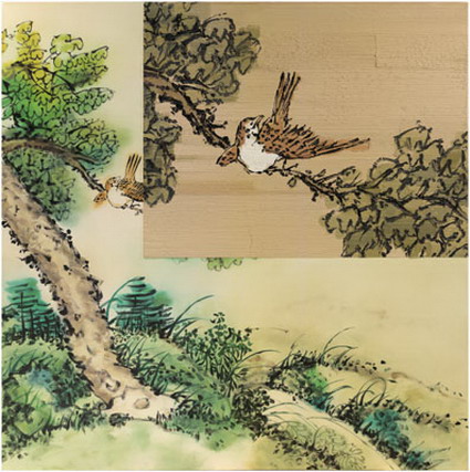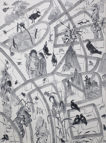 After millennium development, traditional Chinese painting and calligraphy has built an interesting aesthetics labyrinth. Yet, Yue Minjun walks out from this vast labyrinth and construct another maze by using contemporary concepts.