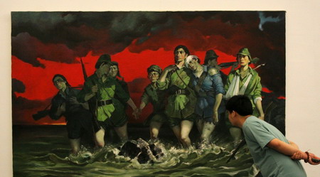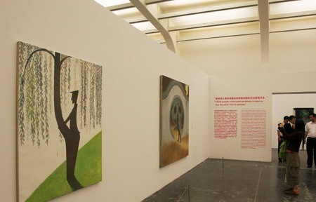 王兴伟个展由UCCA馆长田霏宇策划,他同时为媒体导览了这一重量级的回顾展。