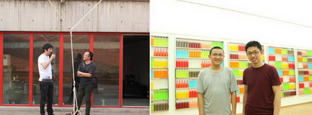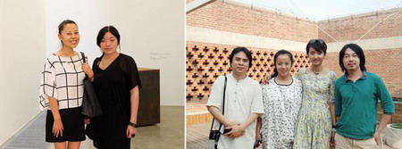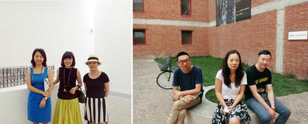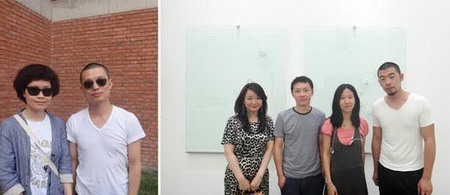 左:艺术家杨光南与张洁白;右:佩斯北京的王蓓,艺术家徐渠,马秋莎与赵赵。