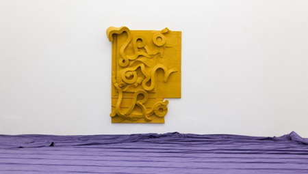 吉塞普·加布罗恩(Giuseppe Gabellone)在这场展览中发展起了一系列全新的作品,它们的布置在设计上配合了GAMeC的Spazio Zero。三件大型的壁挂作品组成了展览的主要部分,同时也是一个产生自词语和短语的视觉精细化的创作与雕塑化的过程的结果。每个极其复杂的层次随后被铸入塑料树脂之中——这是一种能够记录哪怕是最细微的变化的材料,而它同时又抑制了对手工劳动的感知。这三件作品因此而产生了一系列介于雕塑、绘画与语言之间的摇摆状态及感知的模糊性。此外,整个展厅空间还因一件大型的装置作品而得到了改变,这件作品同时也改变了观众的感知体验,对触感和视觉起到了刺激作用。