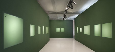 在这场展览中,出于对颠覆性展览形式的热爱与对每一天中那些并不耀眼的时光的着迷,汉斯-彼得·费尔德曼(Hans-Peter Feldmann)将发光的矩形投映在了蓝色和绿色的墙面上,墙面上还固定着用来挂画的钩子,这些都会让人联想到博物馆的展览空间。通过这场展览,汉斯-彼得·费尔德曼(Hans-Peter Feldmann)以一种非常真挚的方式表达了对艺术市场的轻视,为观众呈现了发生在交易和展览中的那些意想不到的美丽。忽略掉场景然后在短暂的时间里发现艺术,汉斯-彼得·费尔德曼(Hans-Peter Feldmann)再次肯定了“普通生活”的艺术价值。