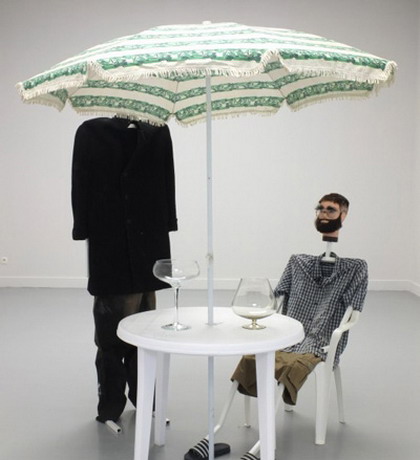 Harald Thys:在德国导演Fassbinder的《四季商人》(Handler der vier Jahreszeiten)的最后,影片主角Hans Epp坐在酒吧的一张桌子上,周围是他的“朋友”和他的妻子Frau Epp。在接连喝了20杯烈酒后,Hans Epp倒在桌上然后死去。这是一个极其“德国”的场景,而Hans Epp在这里的独白像符咒一样影响了我们长达25年。在我们前往德国和法国的无聊的旅行中,我们在那些偏远的城市邂逅了这些“角色”(包括人、建筑和木偶);我们为之着迷,然后缓慢地将其发展到了主要角色中。这些角色或那些奇特的场景永远都不会离开我们的思维。