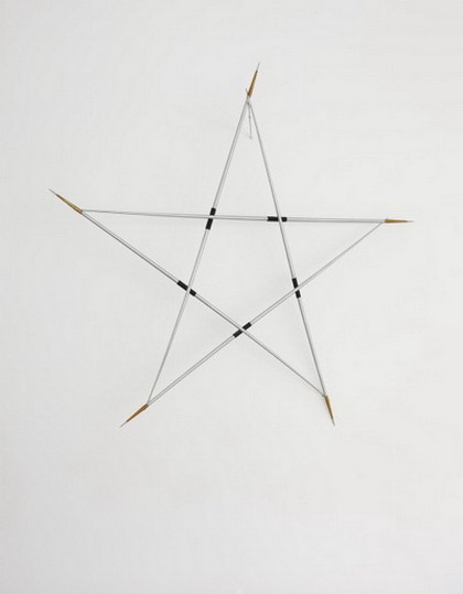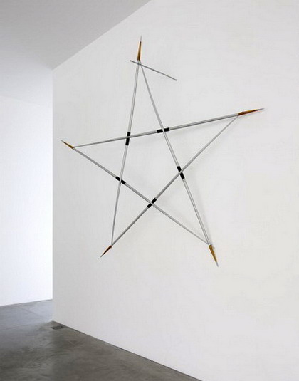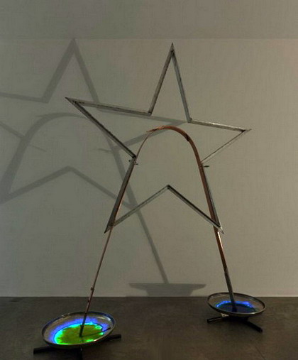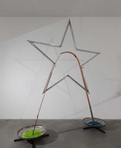 地板上的作品还包括“Stella di cuoio su giavellotti”(2007年),是一个由支柱悬置的皮革星星;“L’Arco che sorregge la stella”(2008年),是一个拱形支撑的星星,其底座的液体是硫酸和荧光素混合水晶盐,这种液体也覆盖在整个结构之上。
