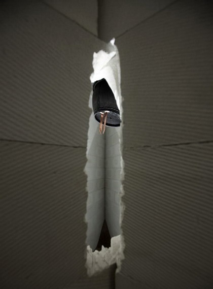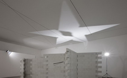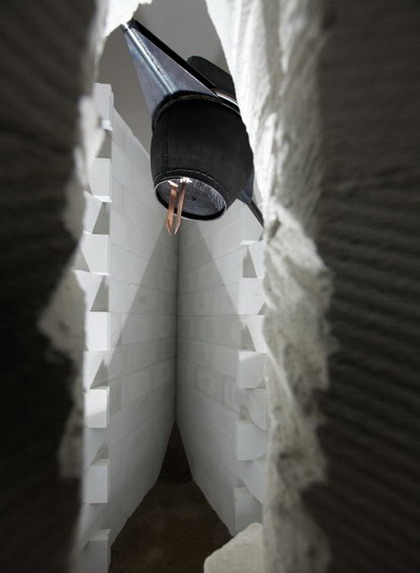 本次展览在画廊的三层中展开,环境则在光明与黑暗之间交替。Gilberto Zorio通过处理在经验、矛盾与未知中摆荡的主题来探索这个空间。