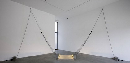 魔幻迹象,通常是不可见的,而现在将会在展厅中出现。底座的铸铁原本是用于制造熔炉的。而钢这种材料通常被用作塑造雕塑,但是在Zorio的展览中,它们被转化为艺术作品本身。在展厅一层,还有一个星塔作品,那个空间的采光只有阳光;而“Luci(光)”(1968年),试图在这里补充更多的阳光,照亮了自身,也驱散了黑暗。二层的空间是黑暗的,“Pyrex”包含着耐热玻璃容器、橡胶容器等Zorio的作品中经常使用的元素。而占据三层的是“Tesla”,放着光,主导着一切。它们都是能量的形式,而且有故事要说。