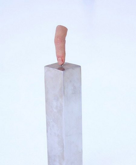《奖杯》,2011 仿真手指及不锈钢底座