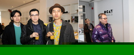 左:OCT当代艺术中心西安馆馆长凯伦·史密斯与策展人Marko Daniel;右:艺术家杨福东,杨振中以及张鼎