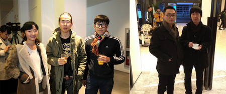 左:艺术家关小,叶凌翰与程然;右:策展人鲁明军与董冰峰
