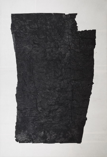 ▲Yang Jiechang 杨诘苍 Monochrome 黑白,1989-1990 Ink,gauze,xuan paper 墨,纱布,宣纸 86 5/8 × 59 1/8 in 220 × 150 cm