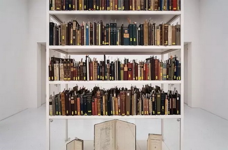 ▲ 玛丽亚·埃希霍恩,《从犹太人财产非法获得的书籍》(局部),2017. 摄影:Mathias Völzke. © Artists Rights Society (ARS), New York/VG Bild-Kunst, Bonn