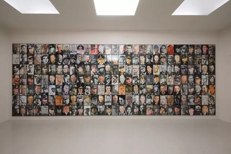 不过,这一沉重的单元却是整个展览里最强的部分之一,将德国-希腊主线放到了历史材料里,让我们回想起两个世纪之前出现的文化地理图景。1800年左右,古希腊牢牢地抓住了整整一代德国思想家与诗人的想象,这种对希腊世界的浪漫主义向往在西方传统中最具影响力的哲学家身上得到了传承,包括黑格尔和拿着纳粹党员证的马丁·海德格尔。在新美术馆对这一谱系的呈现中,我们看到了艺术史学家约翰·亚奥希姆·温克尔曼(Johann Joachim Winckelmann)——希腊美崇拜的创造者——斜躺在他的理想乡中;还看到曾经在传说中的1940年代初国家社会主义展览上展过的一幅媚俗的万神庙油画。美术馆一楼,彼奥特·乌兰斯基(Piotr Uklański)(你听说过的所有波兰艺术家都在这届文献展里)对他之前著名的装置作品《纳粹》(The Nazis)进行了一次令人不寒而栗的更新,1998年首展的“纳粹”系列由扮演第三帝国官员的演员剧照组成,而2017年的这件新作《真实纳粹》(Real Nazis)则汇集了大量真正的纳粹军人以及/或者党员的肖像照片,比如约瑟夫·戈培尔(Joseph Goebbels)、约瑟夫·博伊斯(Joseph Beuys),以及奥古斯特·桑德(August Sander)。一张出自格哈德·里希特(Gerhard Richter)之手的阿诺德·博德(Arnold Bode,文献展创始人)肖像挂在博德本人去希腊旅行时画的素描附近。同在一个展区的还有古尔利特家族几位成员的纸上和油画作品,这个特殊的家族因其臭名昭著的家族长——纳粹艺术商希尔德布兰特·古尔利特(Hildebrand Gurlitt)而为世人周知,希尔德布兰特在二战期间靠犹太家庭的没收财产聚敛了一大批现代主义艺术杰作。希姆奇克原本希望把古尔利特窃取的收藏放到本届文献展上展示,最终未能如愿。但是,对反犹太主义及罪恶感的这一考古学考察在一件有关纳粹劫掠物品的野心之作处达到了高潮。除了放满从犹太家庭窃取的书籍的大书架,玛丽亚·埃希霍恩(Maria Eichhorn)的这件作品还包括成立专门关注劫掠作品返还的新的研究机构等多种要素,堪称此次文献展的白眉之一。它的力量并不来自于什么空洞的概括,也不像部分其他作品那样,试图发表某种泛泛的道德宣言,比如玛尔塔•米努辛(Marta Minujín)在弗里德里希广场上荒诞的禁书万神庙。埃希霍恩的工作方法建立在与之完全相反的基础上:具体性。