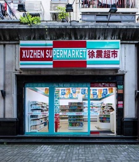 2007年,超市以“香格纳超市”为名,首次亮相。2016年4月,在超市的第九次亮相中,这个“贩卖空虚”的超市正式更名为“徐震超市”,并第一次出现在现实生活的街角——上海愚园路1386号(近定西路)。