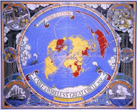 ▲ 常宇晗,不列颠为中心,外海为内海,2016,唐纳德·吉尔作《电缆和无线电大圈图》印刷品,50×58cm