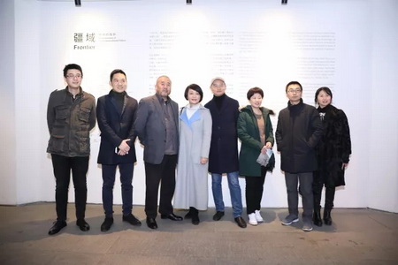 ▲ “疆域—地缘的拓扑”开幕现场,OCAT理事长、深圳总馆馆长栾倩(中)、OCAT上海馆执行馆长张培力(左三)、策展人鲁明军(右二)及前来参加开幕式的嘉宾合影。