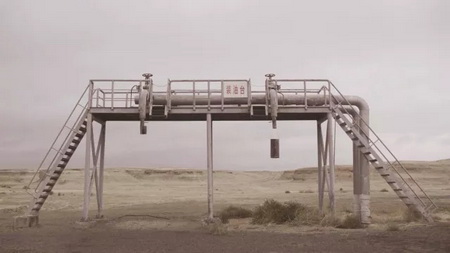 刘雨佳在新疆克拉玛依呆了一个月去拍《黑色海洋》,他对那个地方最深的体验是一种在时间感上的对立与分裂。一方面那里的风景与地貌让人感到时间具有非常缓慢的累积性特征,甚至是完全停滞的。但同时又会看到在这一片风景里,磕头机日复一日的重复运动,工人每天都在机械的忙碌,接送工人的班车一到准点就会结队在公路上行使,所以时间似乎又发生了变化,变得分秒必争,跟高效、巨大的经济利益挂靠在一起。