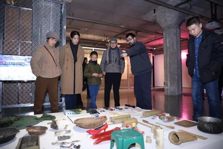 ▲ 鲁明军(右五)向嘉宾和观众介绍展览作品