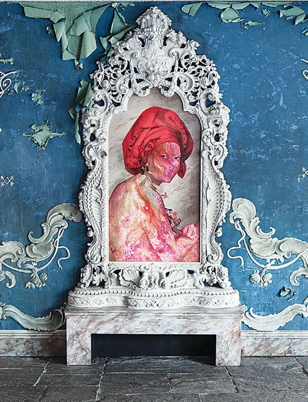 ▲ 费耶丽·巴耶茨(Firelei Baez),《献给Marie-Louise Coidavid,亡命者,秩序守护人,阿库迪亚》,2018,布面油画. 展览现场,德国艺术研究院. 摄影:Timo Ohler.