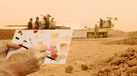 A:过去三周,我在伊拉克拍摄。这是一个开始于三年前的长线项目。我几次拜访伊拉克,都是受到Ruya基金会的邀请,这是一个由3人组成的小机构。在那时,ISIS占领了伊拉克的大部分地区。这个项目的一部分是关于当地的难民营的艺术疗愈项目;我也跟随过对抗ISIS的军队(2016年11月)。这些项目呈现了艺术家作为见证人所观察到的世界,并发问:艺术家对这些事件的解读如何不同于记者。