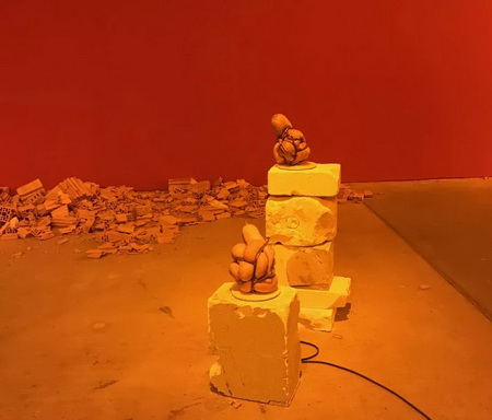 然而,我可以坦诚地说,我对非西方艺术,尤其是非洲艺术的看法因此次展览已经成倍地丰富了。在我看来,Dineo Seshee Bopape的《神秘的不稳定》(2016-18),这是一部粗糙的砖块和视频作品他的杰出之处在于,艺术家就像将KunstWerke中央大厅沉浸在橙色的火焰中。贾布·阿内尔、拉切尔·沃克曼和罗伯特·莱伊特的作品组成这个空间的其它部分,他们共同建构了一个解构现实和感官残骸的地方,离奇并且令人敬畏。在我看来,集体精神病、暴力和代际焦虑的概念都在这个结合的空间中显现出来——单是这个空间今年的柏林双年展就值得一看。