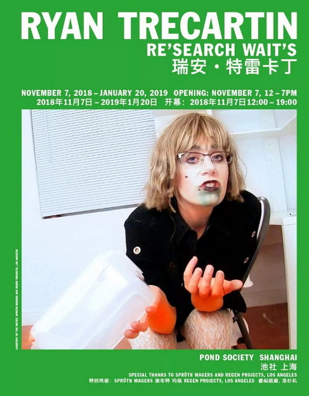 本次个展“Re'Search Wait'S”的作品来自于艺术家在2009 年至 2010 年创作的代表性系列影像作品《Any Ever》(共7件作品)中的第二部《Re'Search Wait'S》, 四件展品分别名为《Ready》《Roamie View: History Enhancement》《Temp Stop》以及《The Re'Search》。整个《Any Ever》系列在纽约 MoMA PS1 进行展出时,为特雷卡丁带来了不少溢美之词。其高度个人化风格的剪辑打破了正常故事叙述的线性逻辑,通过一人扮演多个不同角色、同个场景不停反复出现的方法,让观众自行选择和拼凑出一条线索和关注重点,一如在信息爆炸的现实世界,什么是真实,什么是虚假的,网络世界和真实世界的交迭在哪里,都让我们不断在质疑和相信的过程中徘徊。从这一点出发,可以说瑞安·特雷卡丁的作品恰好捕捉到了网络时代中信息过分饱和所带来的一种迷茫和平庸感。